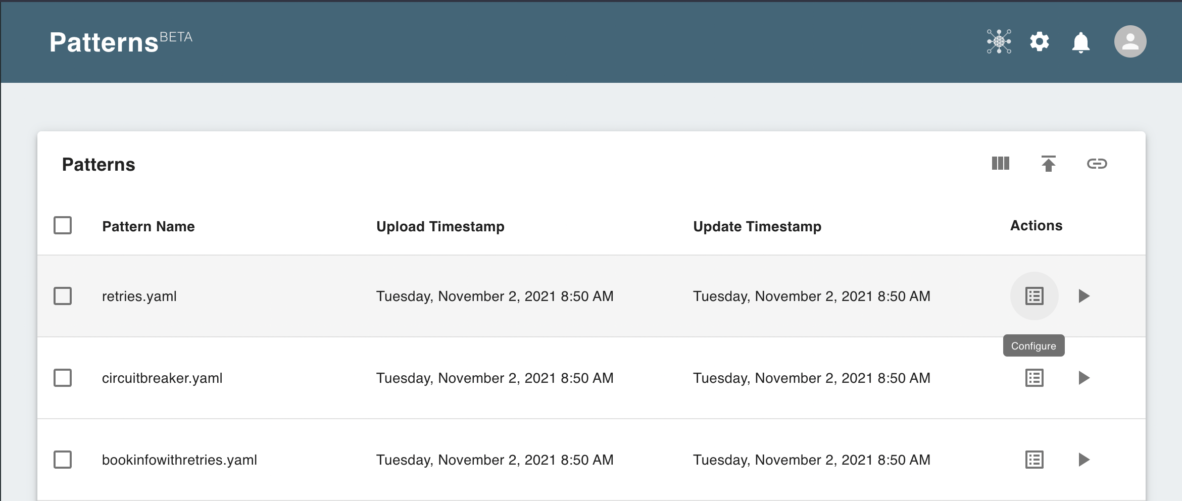 Meshery also comes with seed patterns when users start Meshery for the first time. These patterns cover common use cases and examples for you as you explore Meshery.