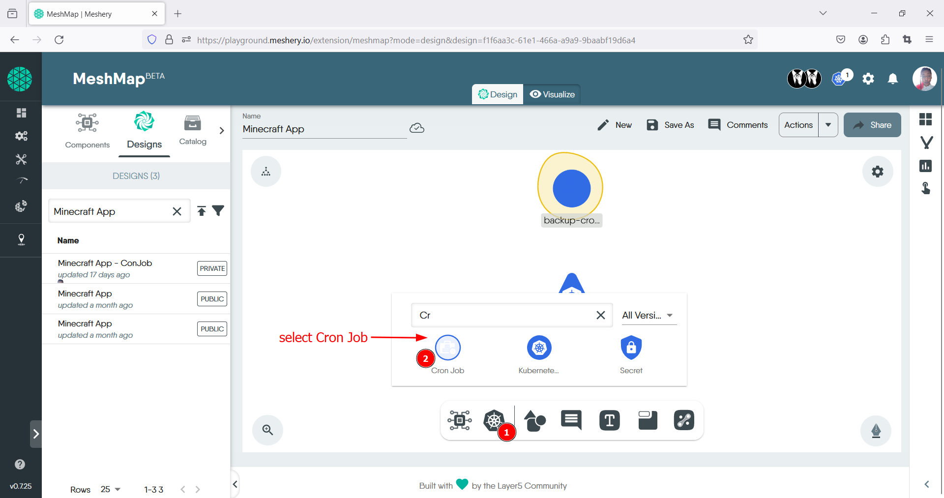 Select the CronJob Design: Choose the design that contains the CronJob you want to scale from the list of existing designs.